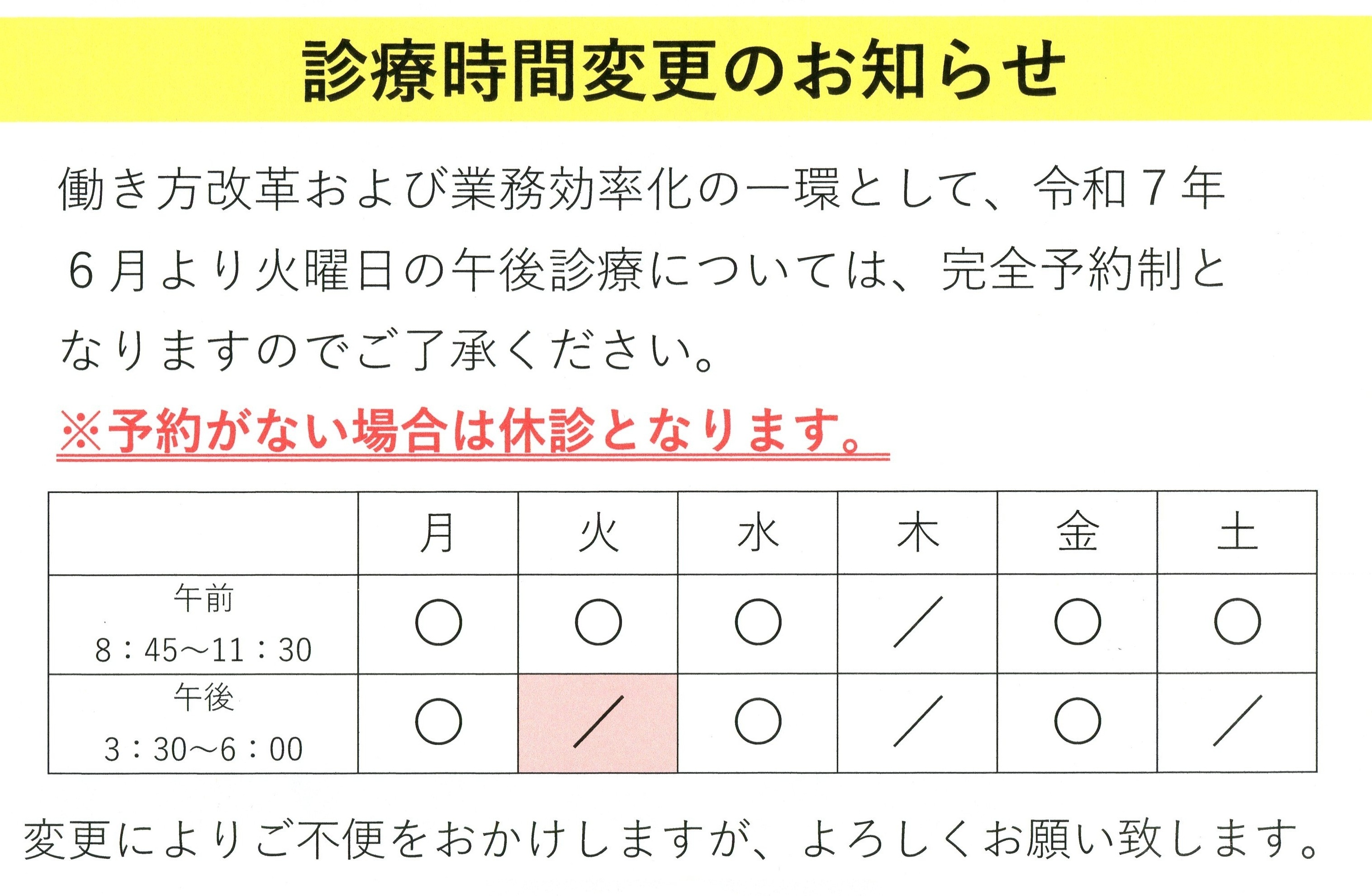 休診日/ 火曜午後・木曜日・土曜午後・日曜・祝日